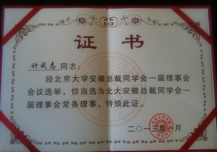 安徽環(huán)瑞總經(jīng)理計(jì)成志先生予2012年順利取得北京大學(xué)EMBA高級(jí)管理碩士學(xué)位,在2013年4月參加了一屆一次的安徽總裁同學(xué)會(huì)常務(wù)理事會(huì)。