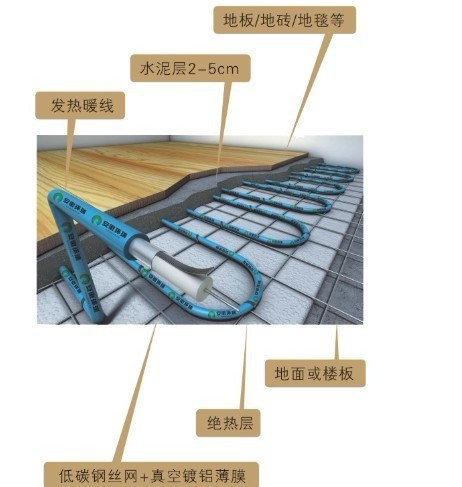 地面供暖 將加熱電纜鋪設(shè)于水泥地下,實(shí)現(xiàn)以下往上的供熱。具體鋪設(shè)方式為;