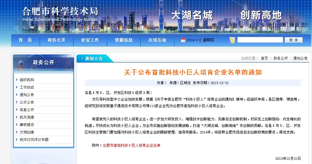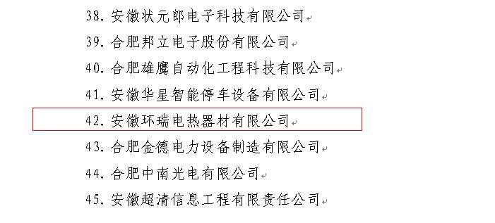 科技小巨人培育企業(yè)是針對有一定生產規(guī)模與研發(fā)能力,并且取得一定量的科研成果的企業(yè)。企業(yè)入選資格需經過經組織申報,縣區(qū)推薦、篩選等環(huán)節(jié)。安徽環(huán)瑞憑借多年電伴熱帶、發(fā)熱電纜生產技術研發(fā)獲得了市政府的重視,入選成功。以下為合肥科技局網通知公司內容: