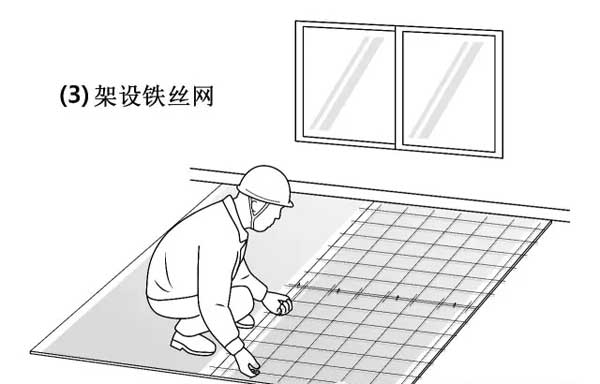 2、鋪設鋼絲網(wǎng),用塑料扎帶連接鋼絲網(wǎng);