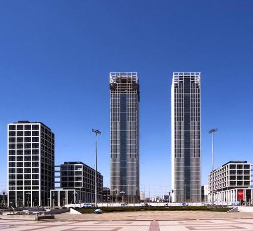 大連國際金融中心諾德大廈位于大連市沙河口區(qū)會展路和體壇路之間,東側(cè)是大連期貨廣場A座工程,南側(cè)是百年匯開發(fā)的大連國際金融中心配套工程,其中軸線是大連星海廣場的中軸線。A、B座對稱布局,面向原來的會展中心。雙子座大廈及其東西配套建筑圍合而成一個長方形廣場,其構(gòu)成向北開敞的會展中心收尾,并在大廈前方營造了延伸到會展路以外的巨大廣場空間。