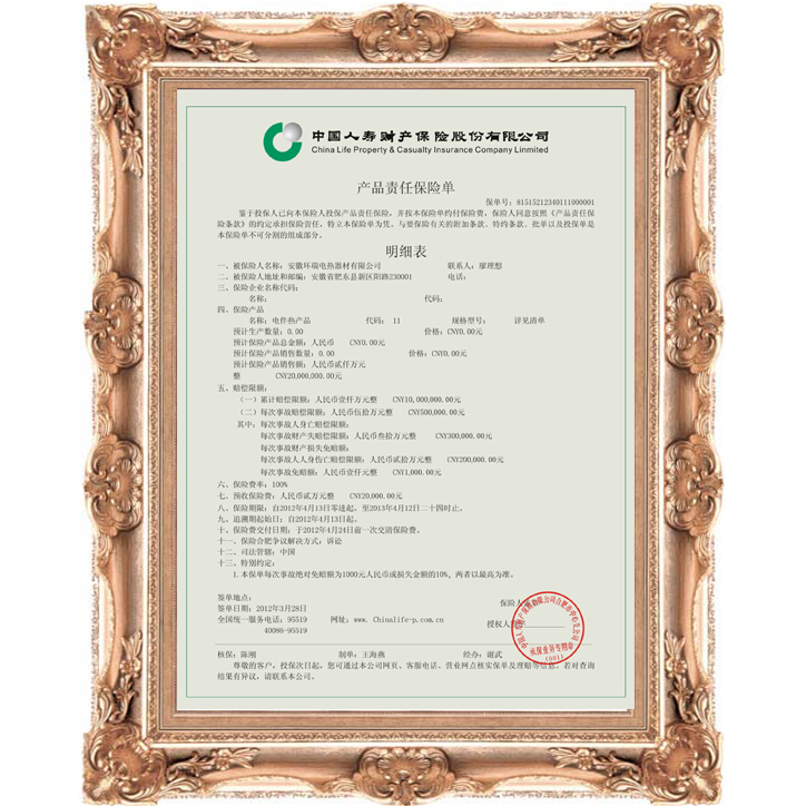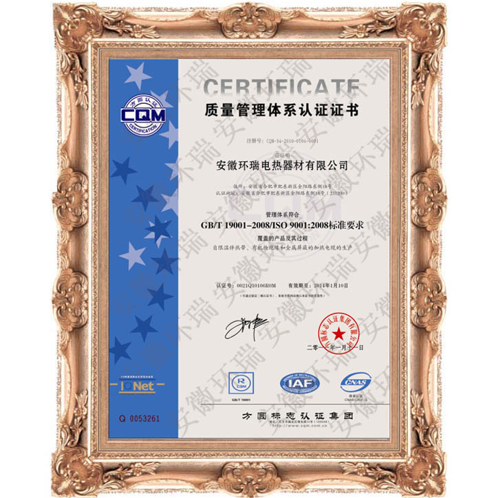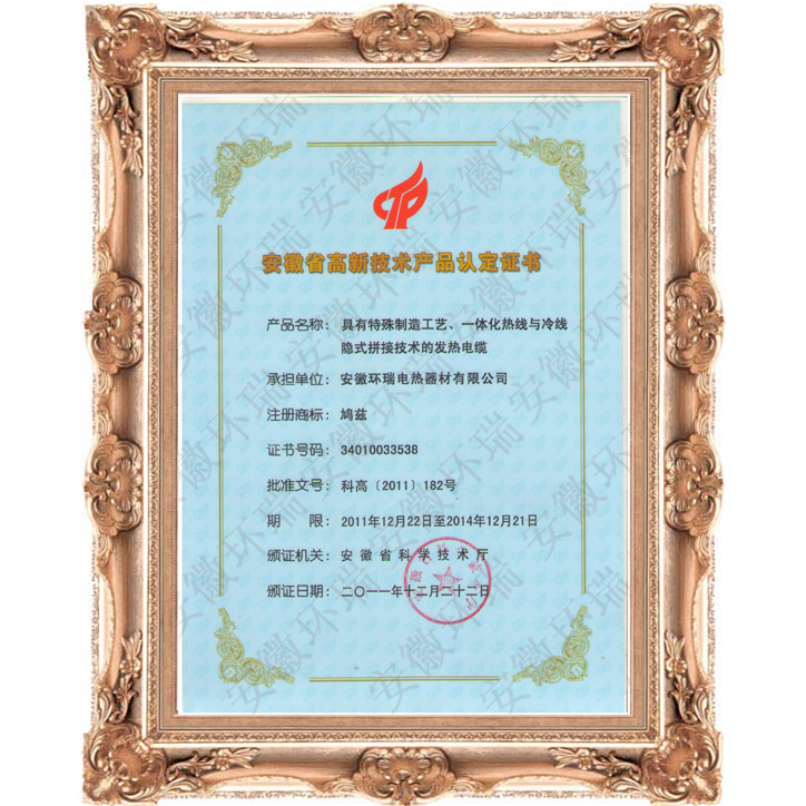 ·安徽環(huán)瑞發(fā)熱電纜獲全國(guó)著名品牌,通過(guò)iso900、國(guó)家防