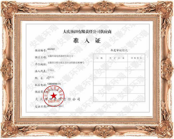 大慶油田入網(wǎng)證