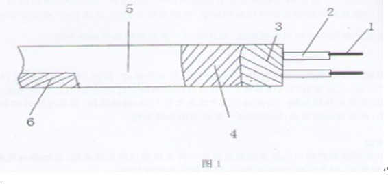 參見圖1,一種單相恒功率電伴熱帶,包括有二個電纜內(nèi)芯,其特征在于:每個電纜內(nèi)芯分別由一根鍍錫銅絞線組成,1、每根線芯分別包覆有芯線絕緣層氟塑料2、二個芯線絕緣層外依次包覆有發(fā)熱絲3、骨架層4、絕緣護(hù)套氟塑料5、金屬屏蔽網(wǎng)6和加強(qiáng)防腐護(hù)套氟塑